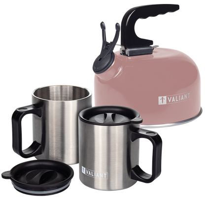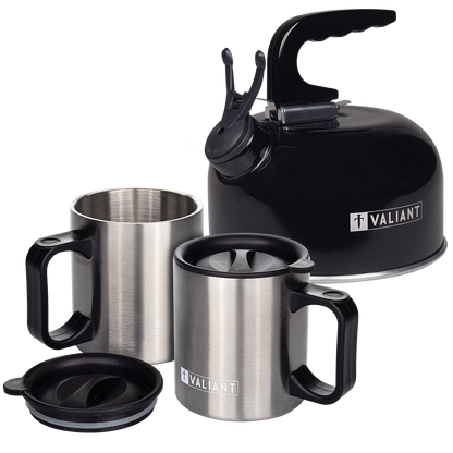 Wherever you wander, hot drinks will be on-hand thanks to the Valiant Camping Kettle and Insulated Mug set.