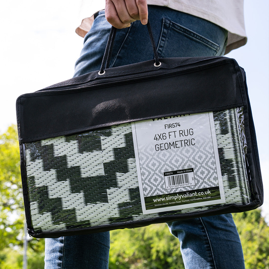 Jazz up your space with a geometric rug, made from 100% recycled plastic. The rug is suitable for both indoor and outdoor use and is easy to wipe clean.