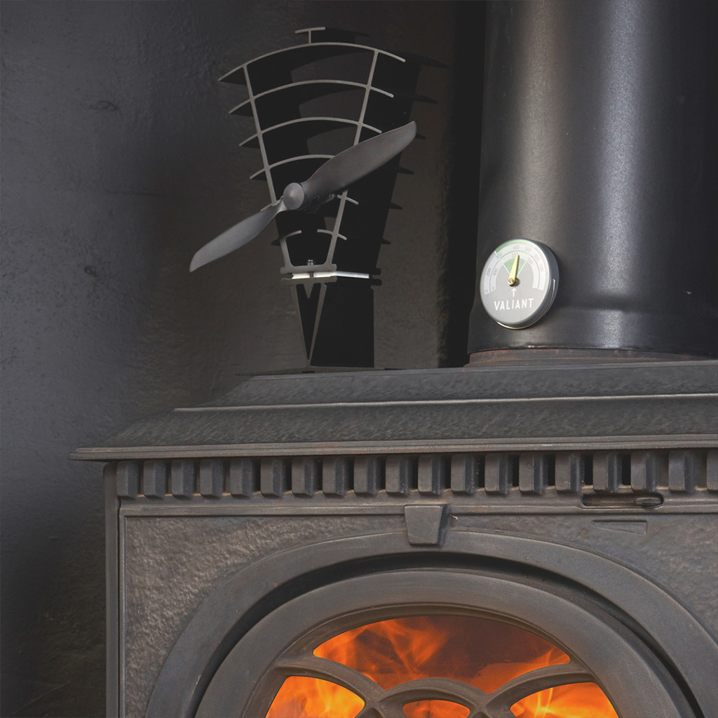 The fan is designed to circulate the warm air created by your stove into larger than average sized rooms. Which means you will no longer be fighting over the arm chair next to the fireplace! Our Stove Fans are also self-powered, using the heat from the stove to generate power so no batteries or mains power are needed.